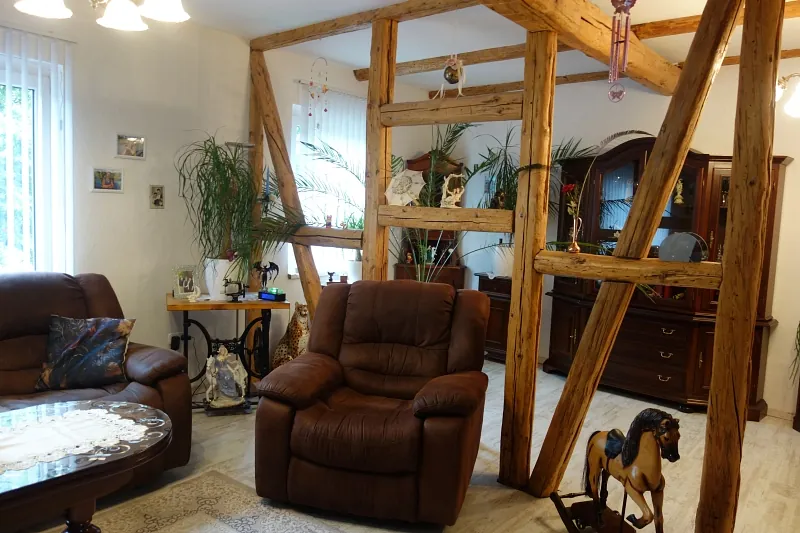 Ausstattung: Isolierglasfenster mit Rollläden im EG, moderne Heizung, Keller, Sommerküche im Nebengebäude mit Werkstatt und Hobbyraum, Garage, großzügiger Garten mit freiem Blick zum Südharz, Anschluss am öffentlichen Abwassersystem